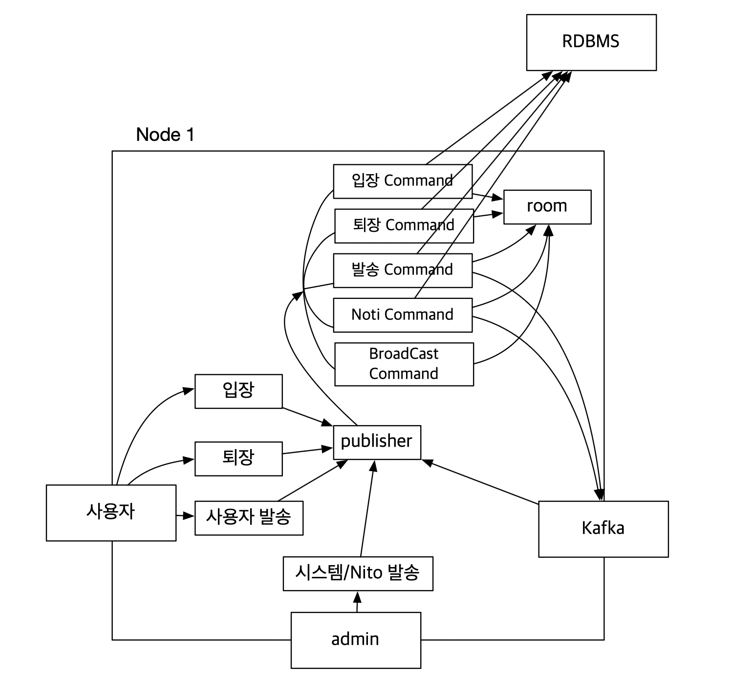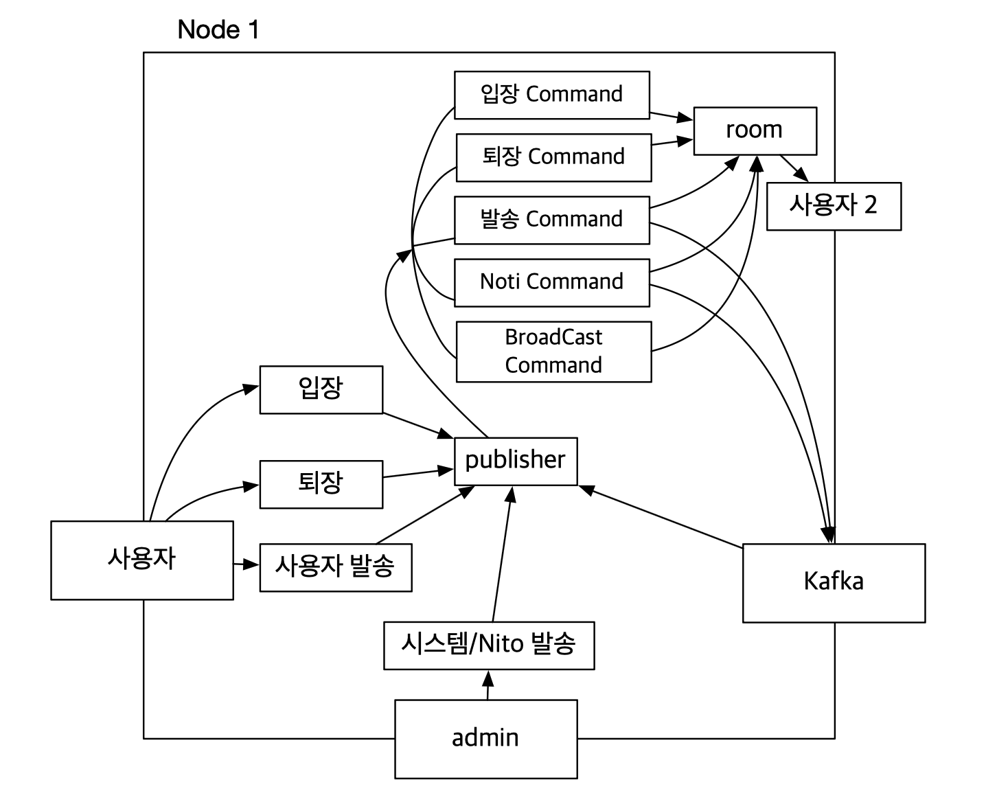 특히 Kafka를 사용한 메시지 브로드캐스팅 구조와, Command 패턴을 적용한 내부 메시지 처리 방식은 실제 실무에서도 확장성과 유지보수성을 높이는 데 큰 도움이 되는 설계 방식이라 판단됩니다.