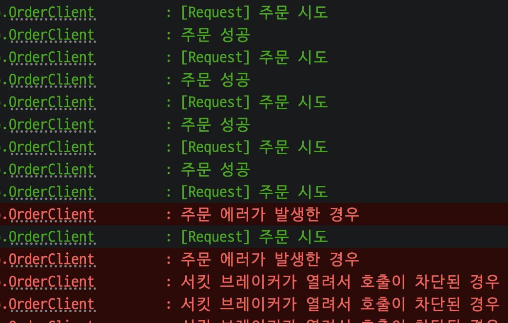 log.error("서킷 브레이커가 열려서 호출이 차단된 경우");