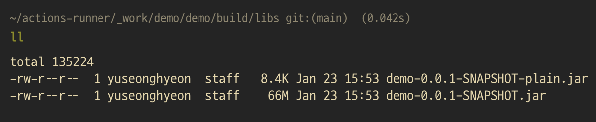 빌드된 파일은 Runner Agent를 실행하는 컴퓨터(서버)에 저장되고 정상 저장을 확인할 수 있다.
