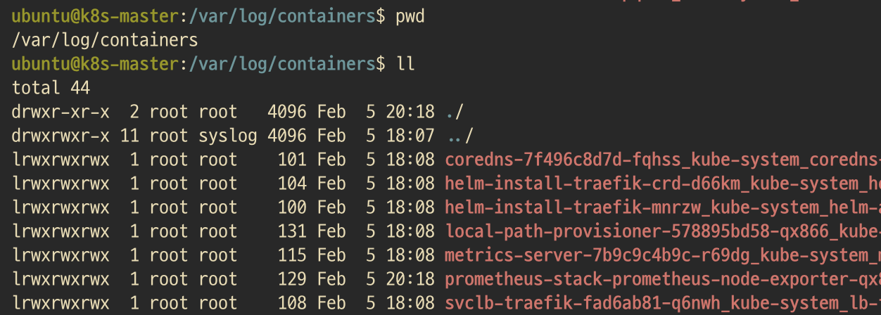 쿠버네티스는 모든 Pod의 로그를 노드의 특정 경로에 링크(Link)하여 저장한다.