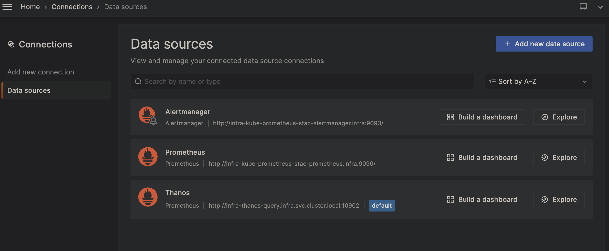 이후 Grafna를 들어가서 Connection의 메트릭 수집 Data Source를 추가한 후 사용한다.