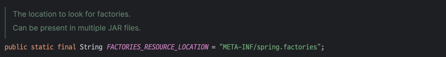 값을 읽어 들일 파일 경로가 존재하고 "META-INF/spring.factories"으로 설정되어 있습니다.