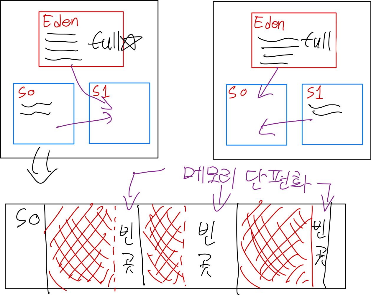 왼쪽은 S1이 비어있고, Eden이 가득 찼을 때
