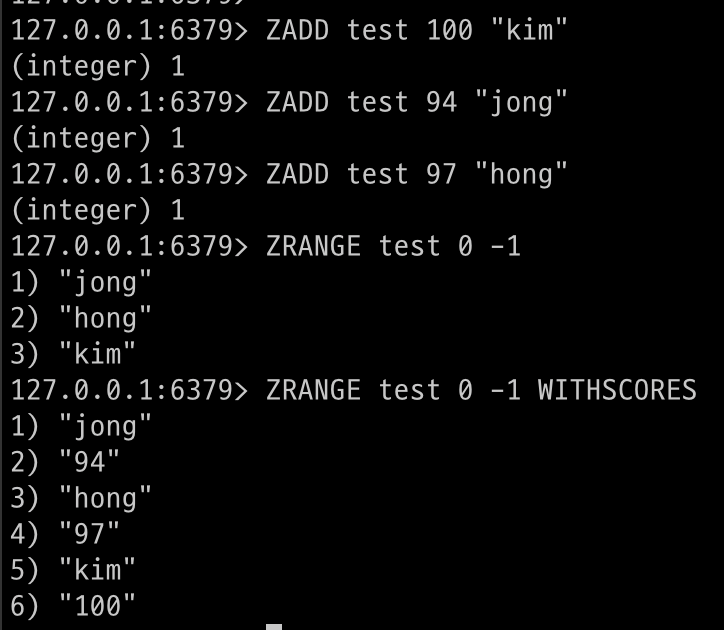 - 요소 간에 순서를 유지하며, 점수를 기준으로 범위 검색이 가능합니다.