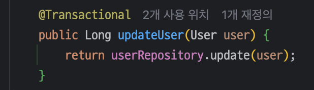 여기서 @Transactional이 적용되어 있으므로 TransactionManager가 실행되어야 합니다. 그러나 UserController에서 updateUserWithLogging() 메서드를 호출할 경우 로그는 정상적으로 찍히지만, 데이터베이스 업데이트가 이루어지지 않습니다.