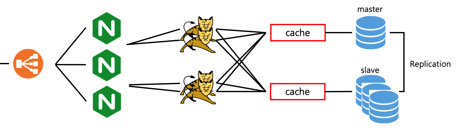 트래픽이 점차 증가하여 10만, 100만 단위까지 올라갈 경우, 웹 서버도 과부하될 수 있습니다. 로드 밸런서를 도입하여 서버 부하를 최소화하고 확장성을 확보합니다.