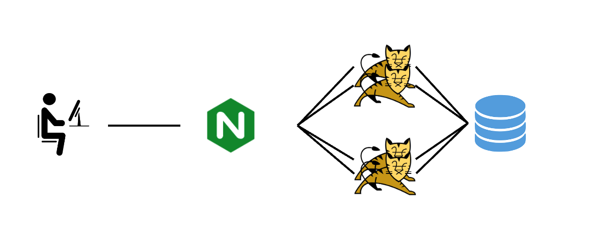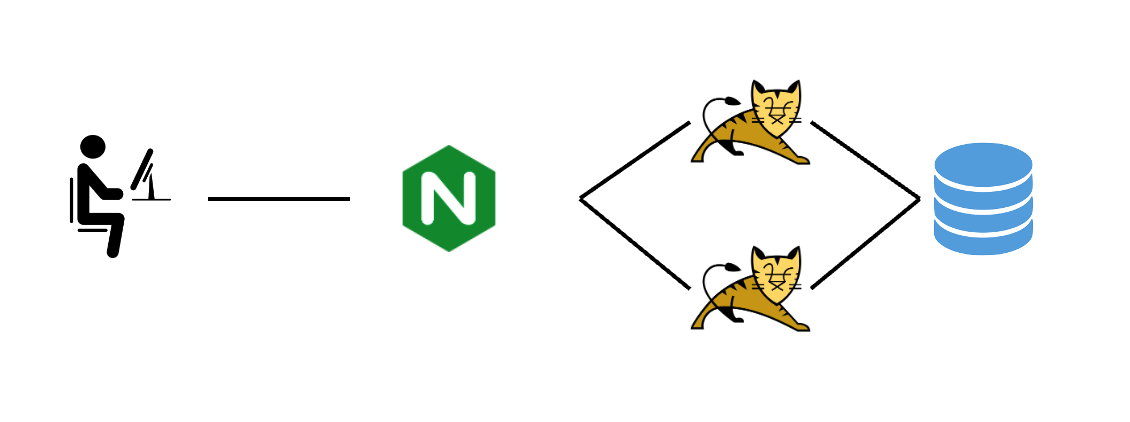 현재 서비스는 1개의 Nginx 웹 서버와 2개의 Tomcat 애플리케이션 서버로 구성되어 있습니다.